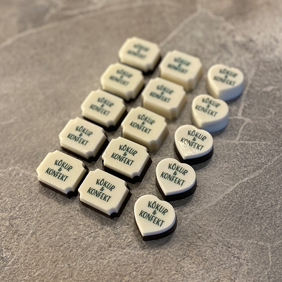 15 Sérmerktir súkkulaðimolar. Hægt er að velja á milli fjögurra tegunda/forma.
