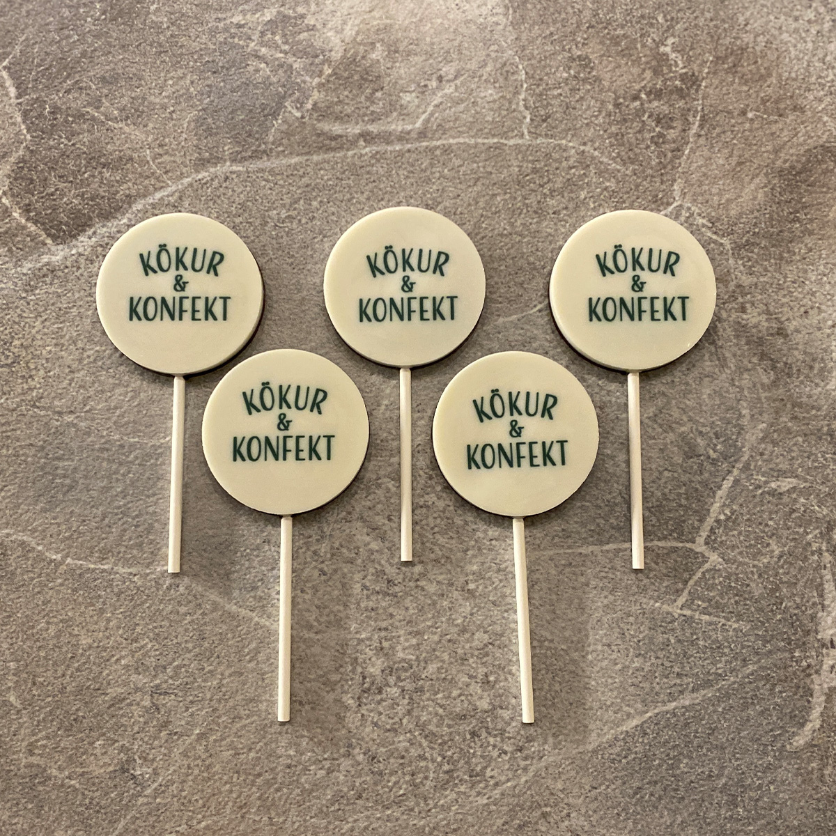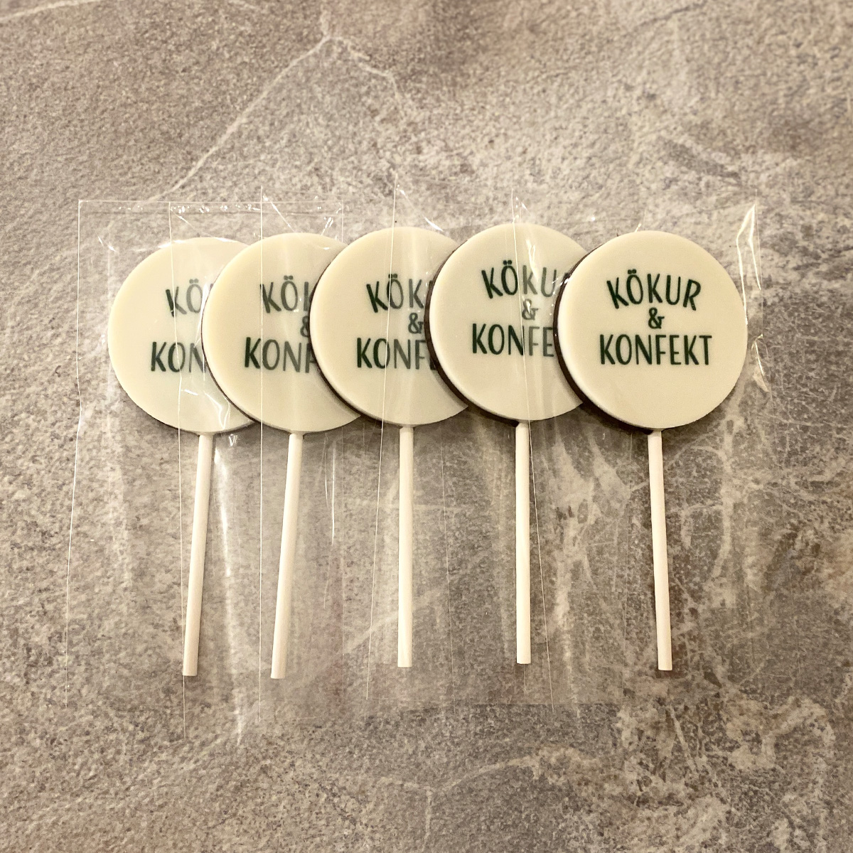 Hringlaga sérmerktir súkkulaðisleikjóar. Hægt er að setja sín eigin skilaboð, texta og myndir en einnig er hægt að velja úr stöðluðum myndum.